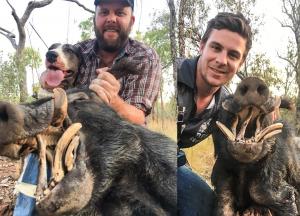 At the top, I spotted a boar he was lying on the sand in the afternoon cool air just down from a cave in the side of the hill where he would have been living. I said look at that big fella Matt looks like he’s got two hooks hanging out of 1 side. The boar was already on to us. Matt jumped out and let my main bitch Pip go as he looked like a decent pig. I ran alongside the hill to keep an eye on the pig but it was rocky as with a lot of spinifex, and I lost sight of him for a second as Matt ran Pip down to where he was. She was up in line with me within seconds; she was moving fast and ran straight up the other side of the hill and stopped. I was thinking no way this pig got that far must be in the middle of the creek still! She came back to the creek working her nose where there was a lot of debris and little hidey holes in the rocks, then bang she was on! He let out a few grunts but then started squealing I was surprised because he looked fairly big I got to Pip grabbed a leg and put this old fella out of his misery. He would have been a great pig in his day, but he was a shelly pig with not much go about him but had an awesome set of hooks that I’d never seen before in all the years of hunting these wild boars we love to catch cheers!