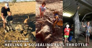 It was a hot day so we started working alongside a creek with the kids an lugers on the back of the ole lux while a close mate an uncle, (China mace) was on the quad with his two finder bailers. China’s dogs Found a good boar from the quad and was bailing him hard in the creek so he flew over to inform us his dogs had a good boar bailed on the other side. We quickly releasing two big bone head lugers and they soon put a stop to the show. We loaded the boar an quad on the Hilux and we set for home to weigh him. We came in at 92kg. The dogs done well an the kids had a ball, Heeling & Squealing Full Throttle