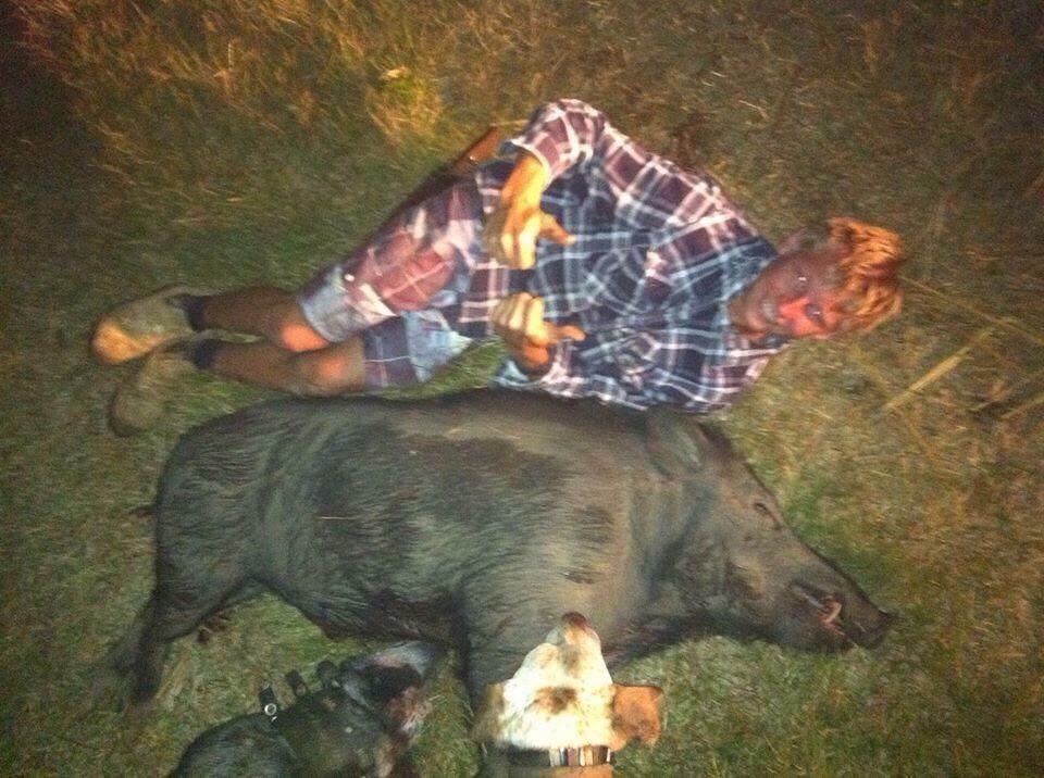 Ok old photo for the comp stopped taking photos years ago and been out of the game a couple years now and getting back in again cane boar held one out by my old stumpy cattle dog and found bailed and sat down by his son crossed with foxhound bully ridge
