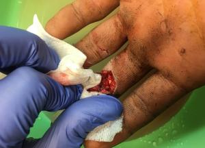We got to 450m and couldn’t drive anymore we began to run, only to here yelping. We let two more dogs go thinking this might be the big boy I was chasing. Sure enough, it was he wasn’t the biggest but a good boar none the less about 80-90 kg and was giving the dogs what for! I ran over to dispatch the big fella. I grabbed a back leg as he threw one of the two dogs that were hanging and tried to run done the hill, dragging me down with him. It was rocky, and we both stumbled. I fell, placing my hand on his head. Just like that, he had me. Crushing and thrashing, he tore at the inside of me rude and ring fingers. My natural instincts kicked in, and I started throwing my other fist swearing and carrying on, I got him off. My mate finished him off and we were off to the hospital where I had surgery the next day. So after this experience, I learned I didn’t want to get bitten again!