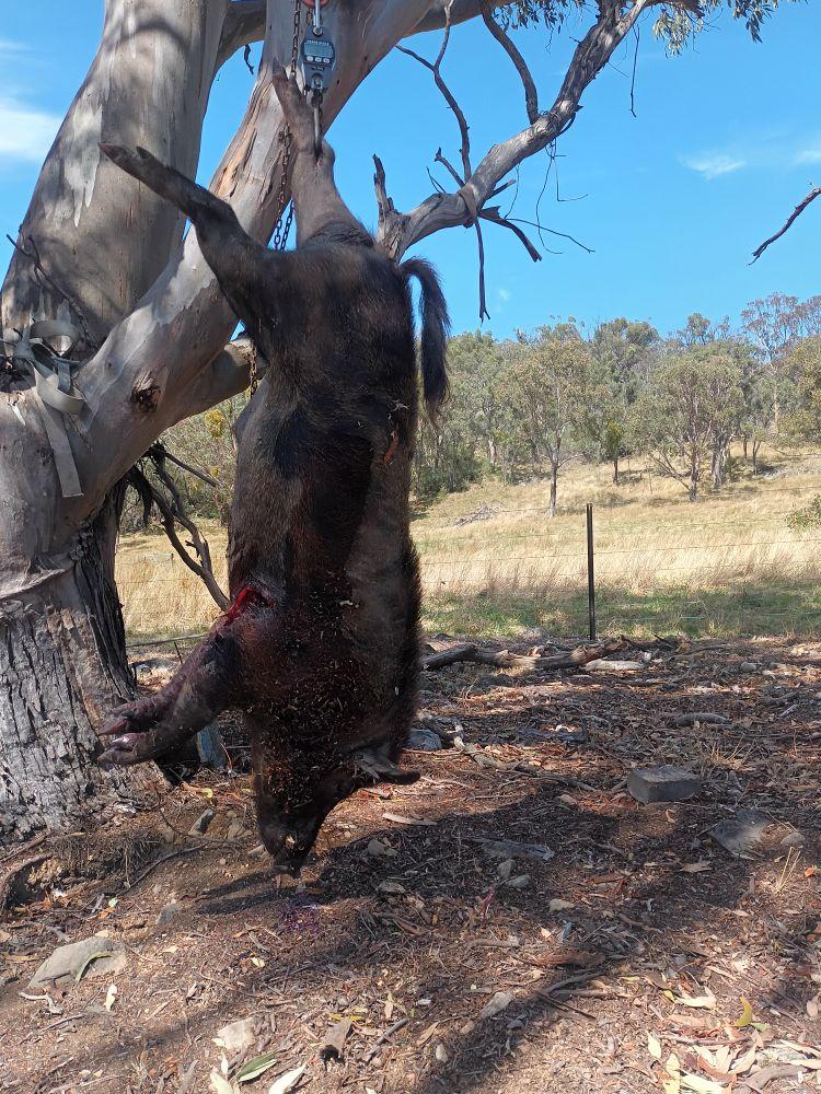 Got this cranky boar up from home last night 97.3kgs, resulted in a 2am vet run, ripped one of the mains dogs guts open Punctured his lung and ripped his shoulder open but he is home on the mend